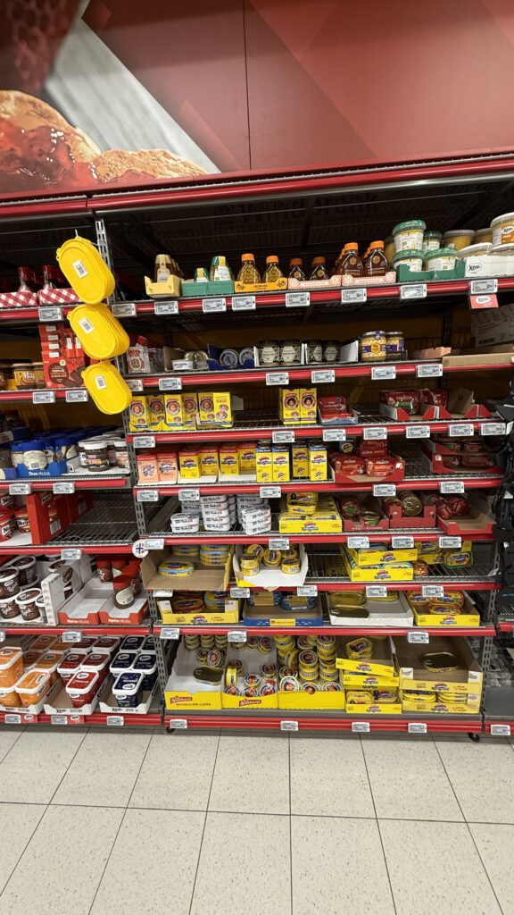 Mal abgesehen davon, dass die Fisch Dosen gleich neben den Marmelade stehen…